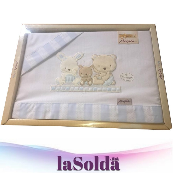 Parure de Lit Pour Bébé Blanc et Bleu 100% coton