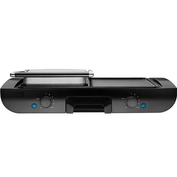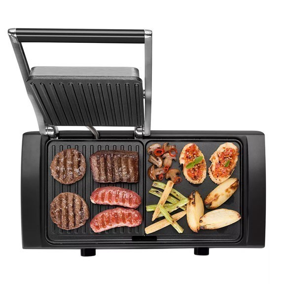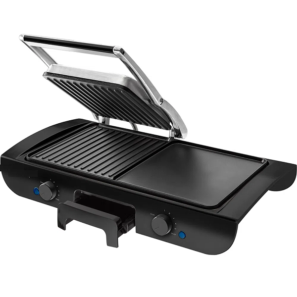 Polyvalent : il dispose d’une plaque grill et d’une plaque lisse, avec des surfaces antiadhésives et des températures indépendantes, permettant la préparation de différents aliments en même temps.