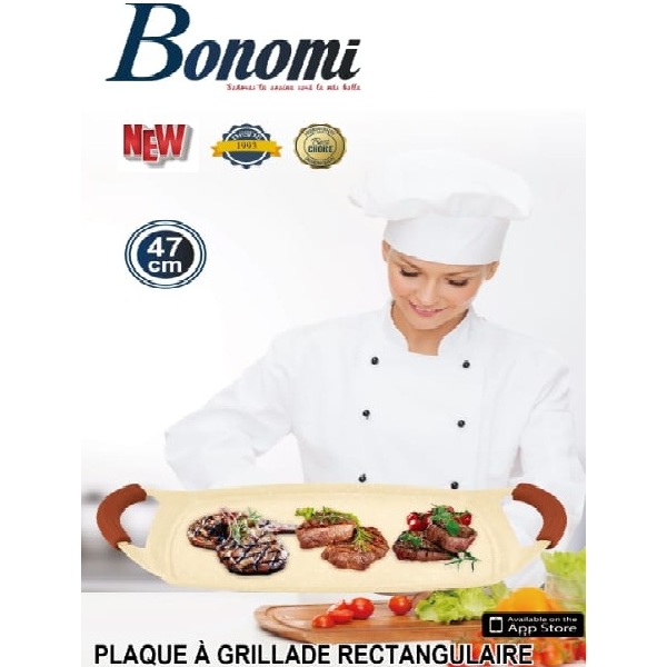 – Faites des grillades sur votre cuisinière avec cette plaque ! En effet, elle est dotée d’un fond à induction qu’il suffit de poser sur votre plaque de cuisson, tout comme une poêle ordinaire. La matière fait alors en sorte que la chaleur se répartisse et se diffuse à travers toute la surface de manière équilibrée. En outre, très peu de graisse est nécessaire grâce à ses qualités anti-adhérentes !