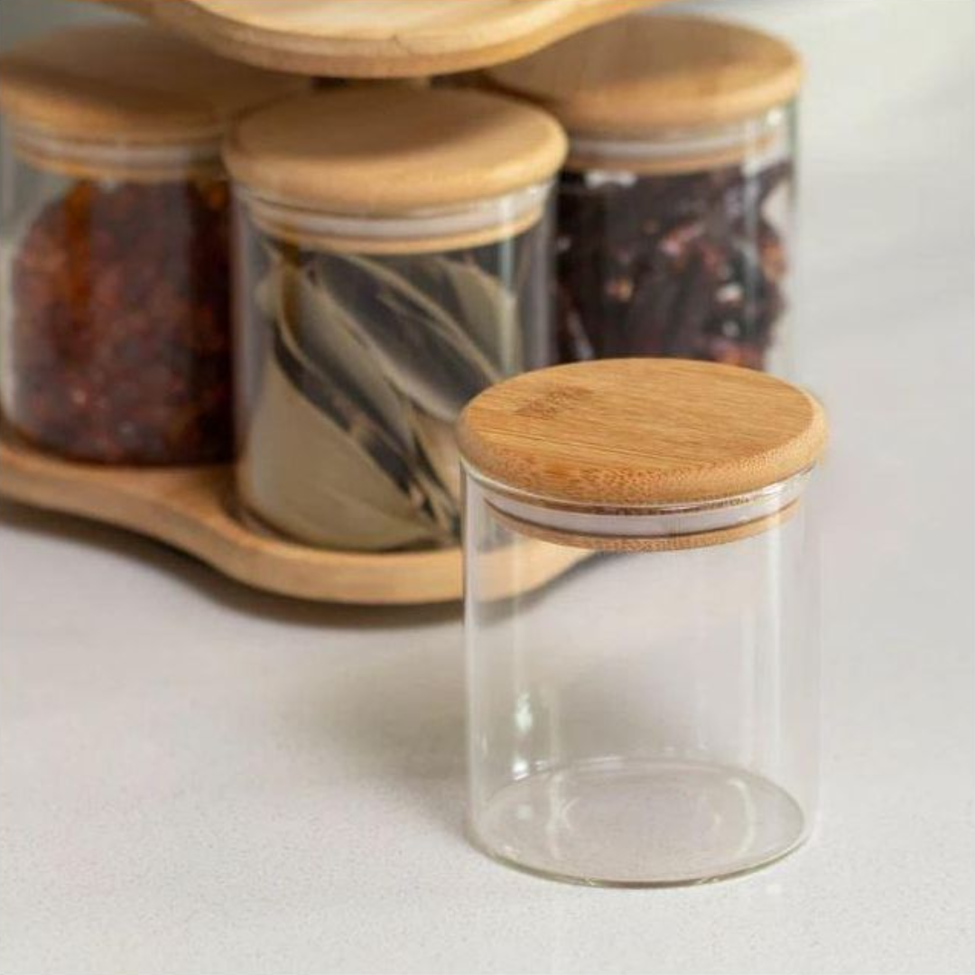Les bocaux en verre inclus sont transparents, ce qui permet d’identifier rapidement le contenu. Leur fermeture hermétique protège efficacement contre l’humidité et l’air, préservant la fraîcheur de vos épices plus longtemps. Ce plateau est donc un choix idéal pour ceux qui souhaitent allier organisation et hygiène dans leur cuisine.