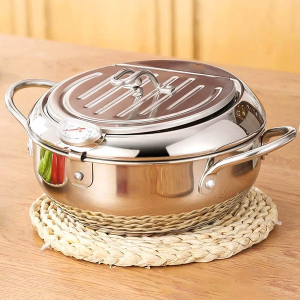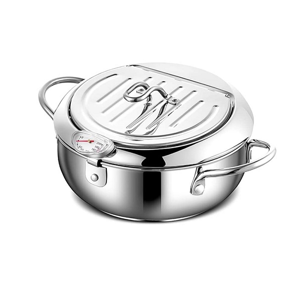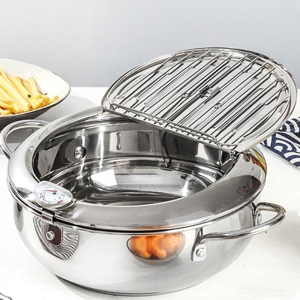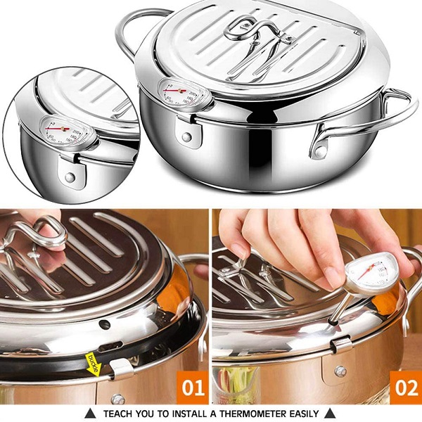 Poêle à Frire Avec Thermomètre Contrôle Température Et Grille d’égouttement d’huile