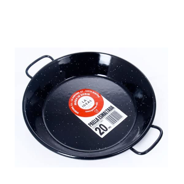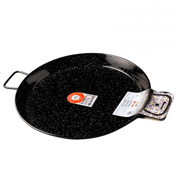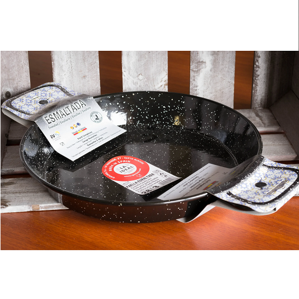 Poêle à paella en acier émaillé de différentes dimensions au choix, idéale pour réaliser la paella.