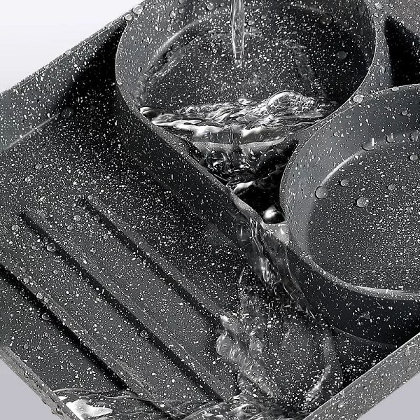 Facile à nettoyer, résistant aux taches sans laisser de grandes quantités de poêles à nettoyer. Cuisinez plus rapidement, nettoyez moins, et profitez encore de bons repas.