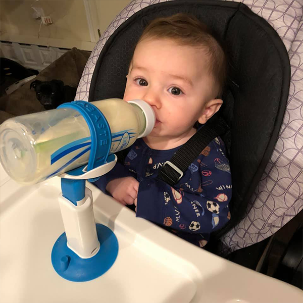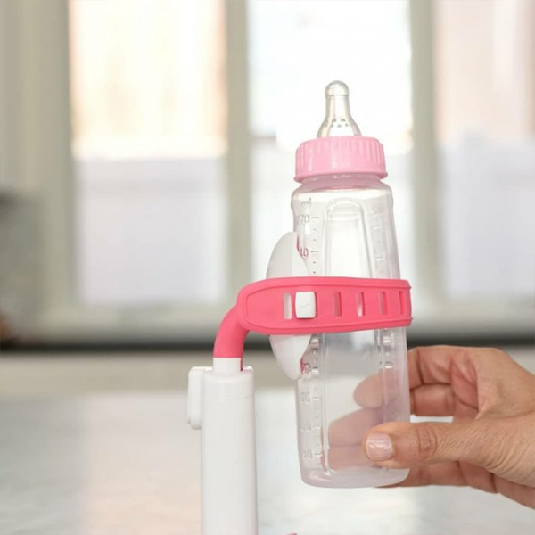 BABASTE est un support pour biberons qui gardera presque n’importe quel biberon afin qu’un bébé ne puisse pas le jeter à travers la pièce pendant son repas. En fait, une fois le biberon bien accroché au dispositif Babaste de votre bébé, celui-ci pourra peut-être se nourrir sans votre aide. Chaque appareil est doté d’une ventouse qui lui permet de coller à presque toutes les surfaces et d’une hauteur réglable afin de l’adapter à la position du visage de votre bébé.
