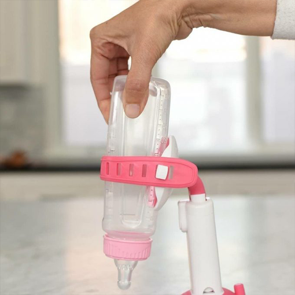 – Ajoutez votre biberon: Placez le biberon dans le berceau en forme de u.