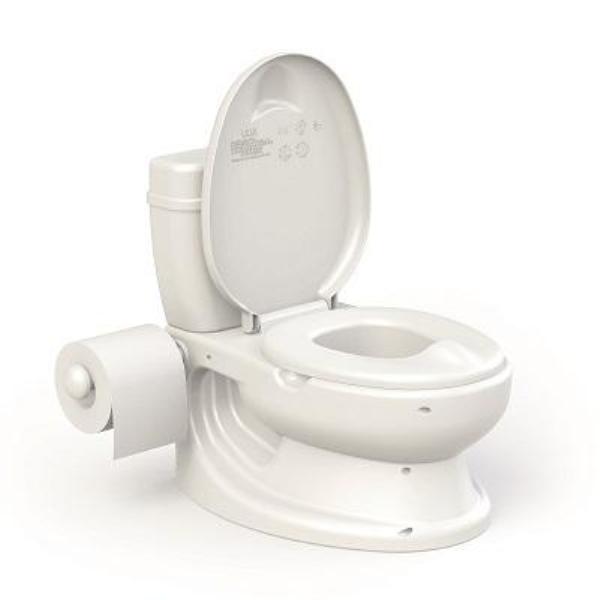 – Des WC pour enfants, un nouveau pot d’apprentissage à la propreté pour les enfants. Grace à son réalisme, l’enfant apprends par mimétisme avec envie, pour faire comme papa, maman, grand frère ou grand sœur. Le Pot possède un grand rangement pour les lingettes et autres produits et un effet bruit de chasse d’eau pour pousser le réalisme. Votre enfant sera propre plus vite et avec plus de plaisir. – “J’apprends à aller aux toilettes comme les grands sur mon toy-let à moi » – “Je suis assis confortablement, je peux rester longtemps sur mon toy-let » – « Je range mes petits livres dans le coffre de mon toy-let” – « Quand j’ai fini, je prends le papier tout seul et j’appuie sur le bouton de la chasse d’eau*, c’est ce que je préfère ! » * chasse d’eau factice, on entend seulement le bruit. – Pot amovible pour le vider et le nettoyer facilement.