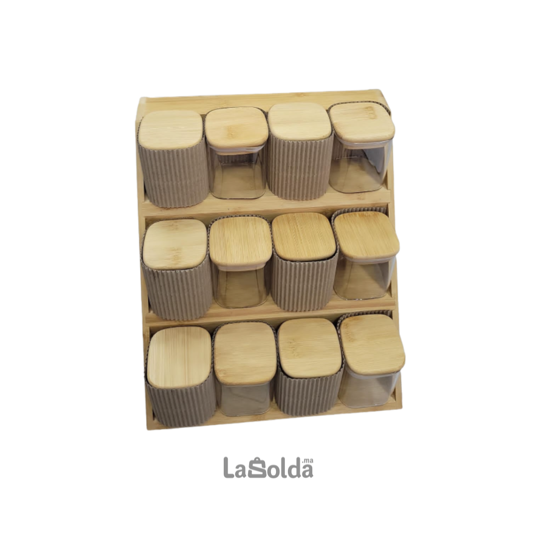 Découvrez le set de 12 pots de conservation en verre avec couvercle en bambou et support, un indispensable pour garder votre cuisine organisée et vos aliments parfaitement protégés. Fabriqués en verre borosilicate de haute qualité, ces pots sont à la fois résistants, transparents et élégants.
