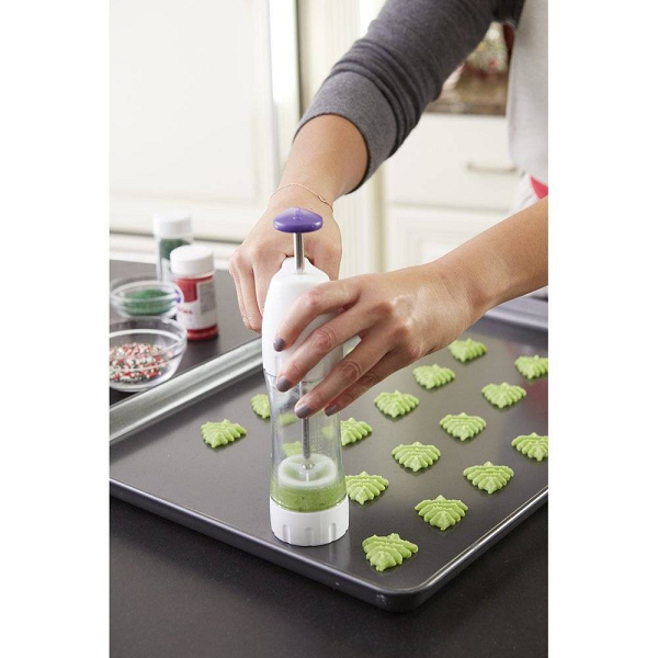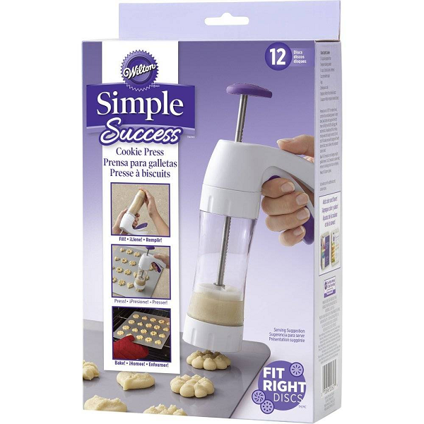 Le Wilton Simple Success Cookie Press est un emporte-pièce pour biscuits facile à utiliser ! C’est simple, remplissez l’emporte-pièce, pressez et cuisez les biscuits. La série contient 12 designs différents, donc vous pouvez créer des biscuits pour chaque occasion.