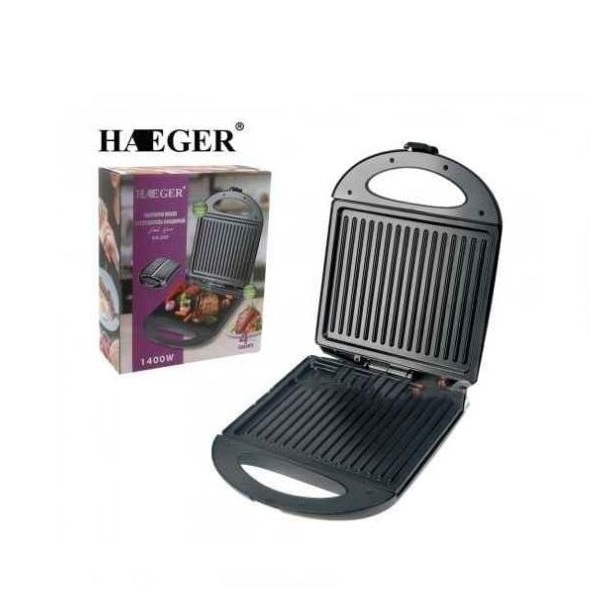 Sandwich maker et grill haeger pour faire des sandwich et les chauffer en même temps grill barbecue pour cuisson viande saucisse légumes etc Surface anti-adhésive Température de contrôle variable Thermostat extinction automatique Lumière d’indication sur la cuisson Une facilité pour le lavage 220-240V 50HZ 60HZ 1400W