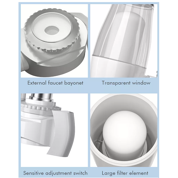 - Éliminer efficacement les rouilles, les algues, les vers, les sédiments, les poussières, les colloïdes, les parasites, les bactéries, le chlore et bien plus encore, améliore l’odeur et le goût de l’eau du robinet.