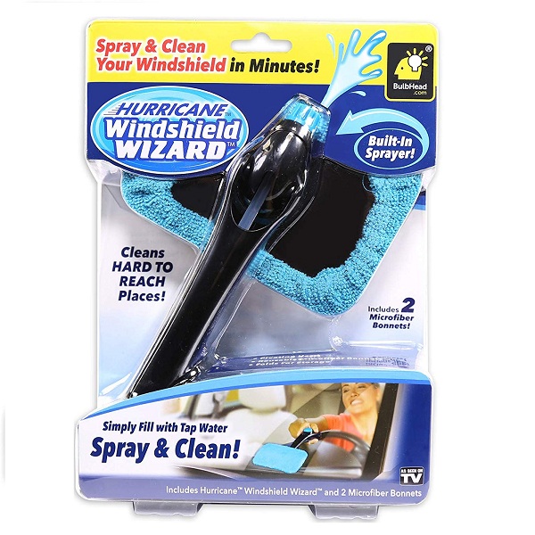 Nettoyez le pare-brise de votre véhicule avec moins d’effort, grâce au pulvérisateur intégré, à la tête pivotante et au capot en microfibre de Hurricane Windshield Wizard. Se plie à plat pour un stockage peu encombrant. Comme vu à la télé.