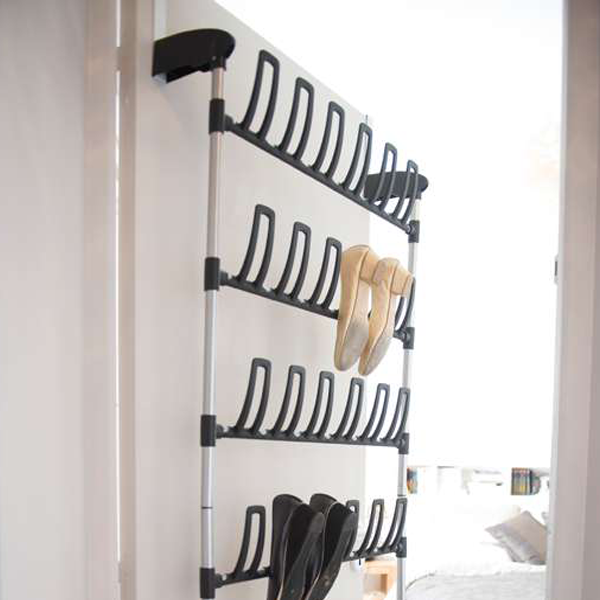 – Un range-chaussures vertical qui s’installe sans clou ni vis sur le dessus d’une porte (jusqu’à 4,5 cm d’épaisseur).