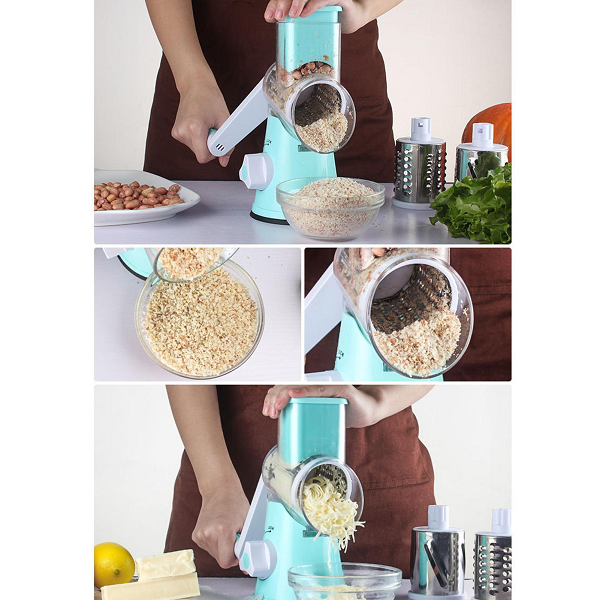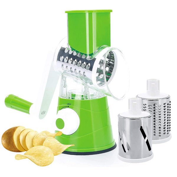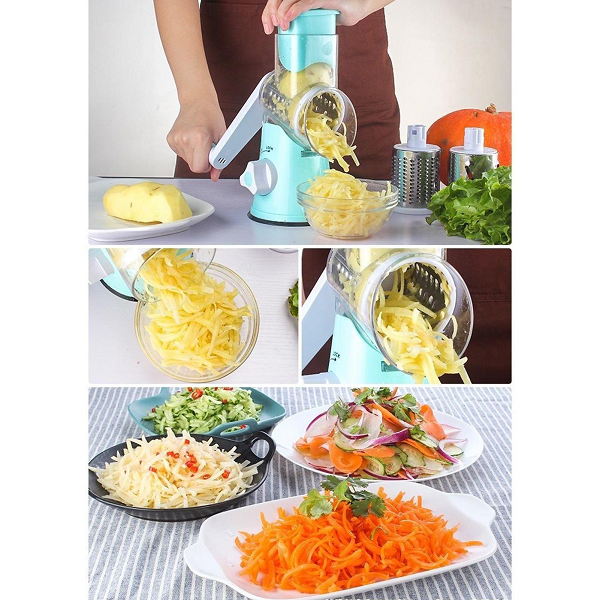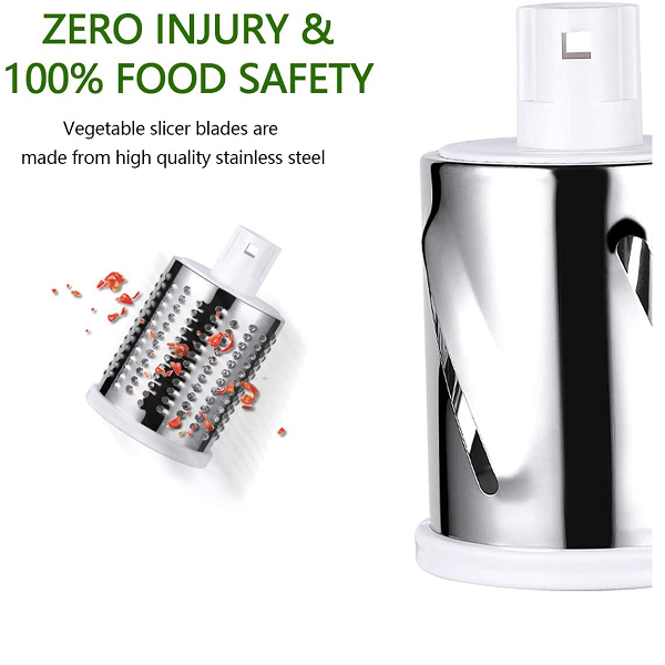 3 lames interchangeables en acier inoxydable Parfaites pour tous les types de légumes: tomates en tranches et fruits en tranches, carottes, concombres, pommes de terre, oignons, etc.