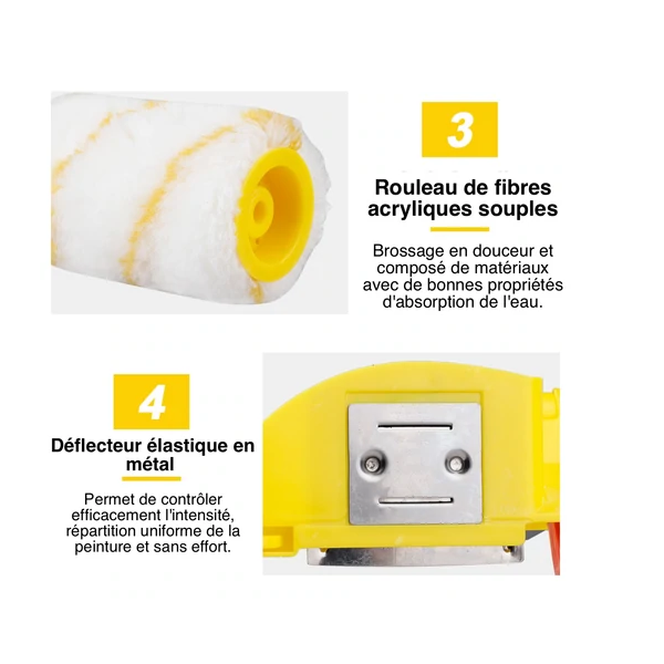 Grâce à son bouclier de protection, votre rouleau de peinture ne débordera pas sur les bordures de murs et plinthes. Avec sa mini brosse, vous atteindrez les moindres recoins. Vos lignes de peinture seront droites.