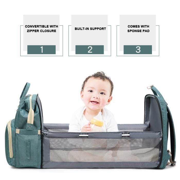 – Ce sac couffin est Doté de plusieurs poches de rangement, pour faciliter le transport des affaires bebe, ce sac malin se transforme en un tour de main en un sac à langer convertible en couffin pour allie sommeil et confort de voyage.
