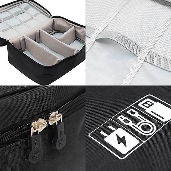 – Avec ce sac de rangement pour câbles et accessoires électroniques, vous pourrez ranger, organiser et protéger tous vos câbles et appareils électroniques. Vous gagnerez de la place dans vos bagages et vous arrêterez de chercher votre chargeur partout.
