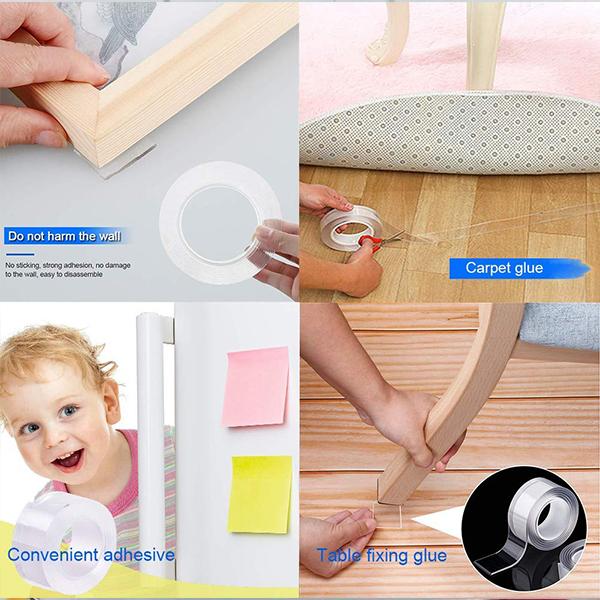 – Le ruban nano-adhésif a de nombreuses fonctions. Il peut non seulement être fixé au mur pour le stockage, mais également utilisé comme outil de décoration. Vous pouvez également coller le cadre photo et coller les pieds ou le tapis pour le fixer.