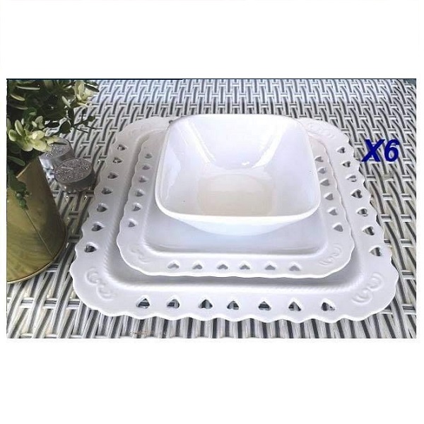 – 6 Grandes assiettes carrées de 25 cm perforées en cœurs.