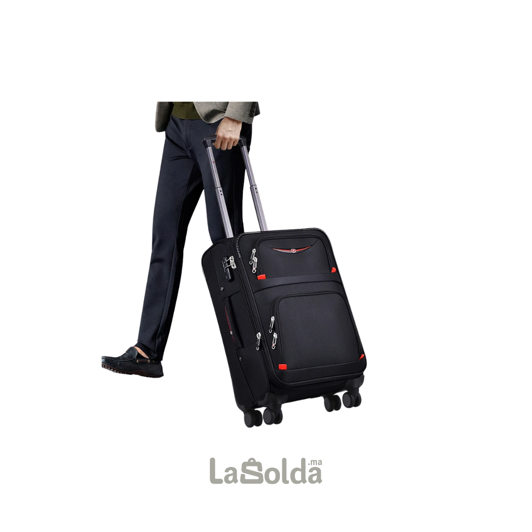 Ces valises arborent un design classique et sobre, avec une finition noire élégante. Fabriquées en textile résistant, elles offrent une bonne tenue face aux chocs légers et à l’humidité. Le format souple optimise le rangement tout en restant léger.