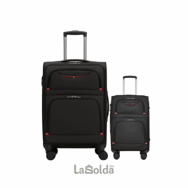 Les deux valises sont fabriquées dans un tissu souple et résistant, capable d’absorber les chocs tout en restant léger. Leur finition noire classique s’adapte à tous les styles de voyage.