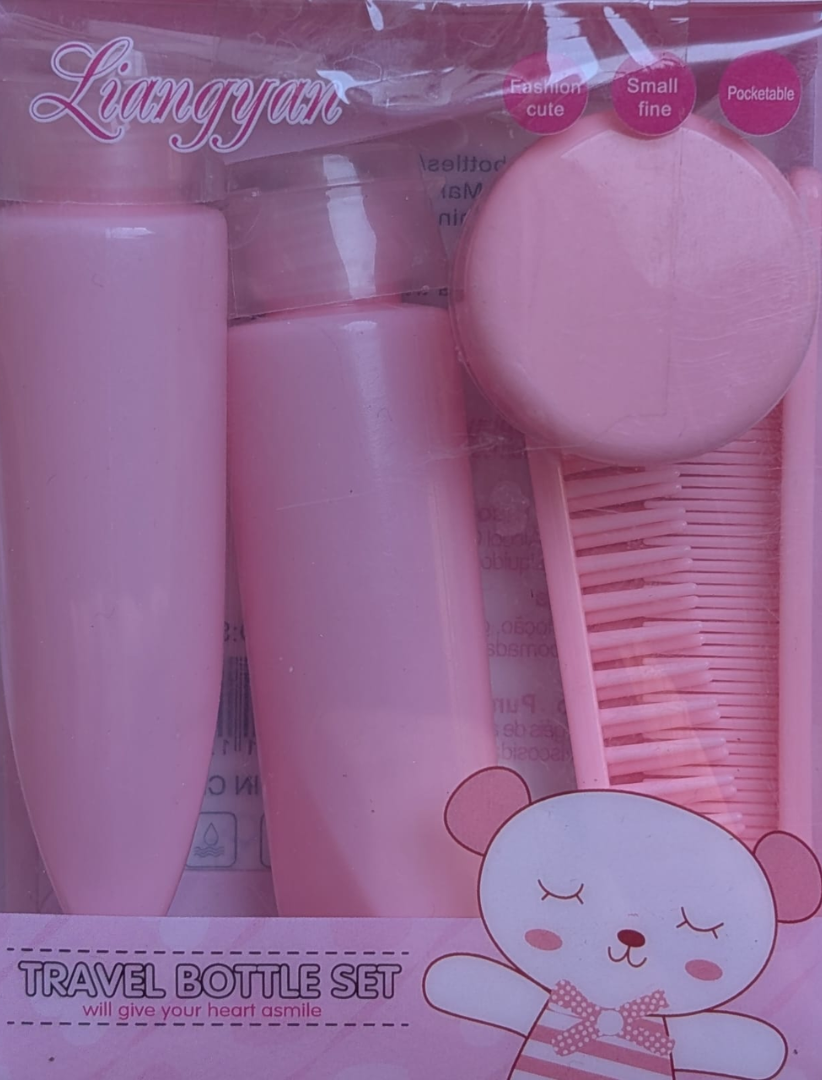 Ce kit se compose de plusieurs contenants pratiques : des flacons souples parfaits pour shampoings et gels douche, un petit pot idéal pour les crèmes et un accessoire complémentaire pour vos lotions. Chaque élément est pensé pour être léger, réutilisable et facile à nettoyer, afin de garantir une utilisation durable.