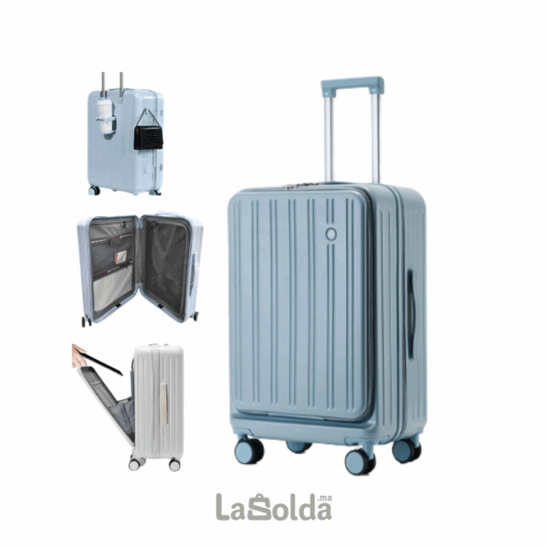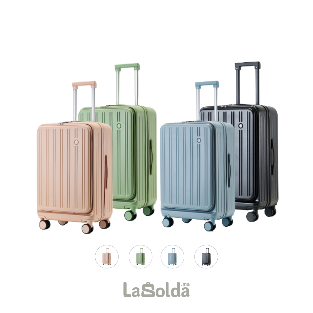 La valise cabine mesure 48 x 35 x 24 cm et peut contenir environ 10 kg. Elle est idéale comme bagage à main, compatible avec la plupart des compagnies aériennes.