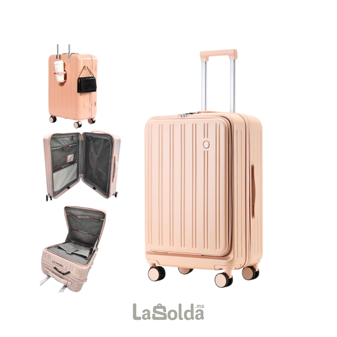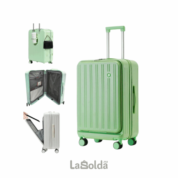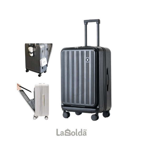 La valise moyenne, quant à elle, mesure 61 x 40 x 28 cm avec une capacité d’environ 20 à 23 kg. Elle complète parfaitement l’ensemble pour les séjours plus longs.