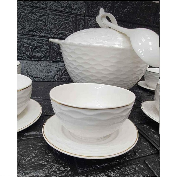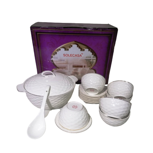 Soupière Porcelaine Blanche 6 Bols , Et 6 Sous Bols 15 pièces