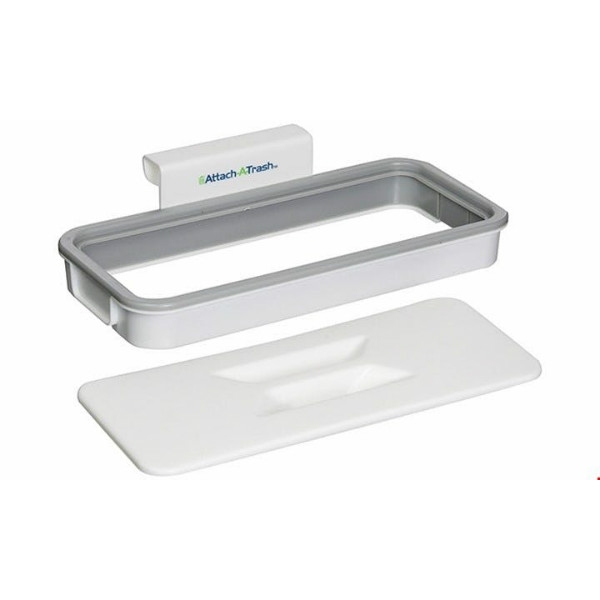 – Attach- A- Trash peut s’adapter ou accrocher à l’intérieur ou à l’extérieur des armoires de cuisine.
