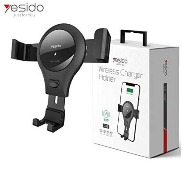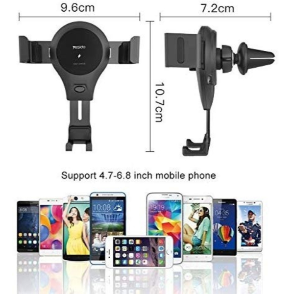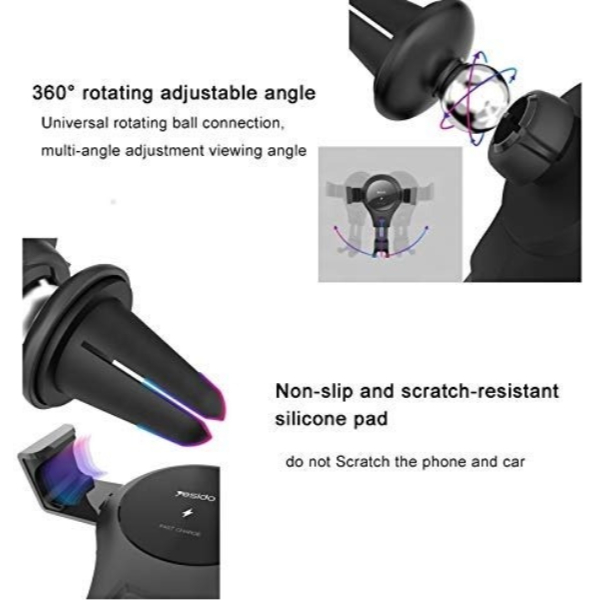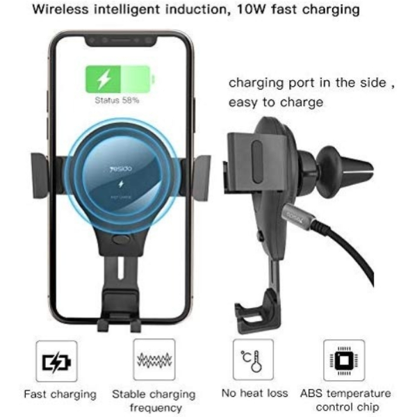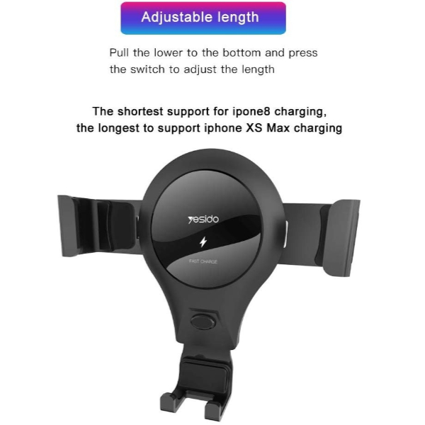 – Support pour téléphone de voiture de gravité réglable de chargeur rapide sans fil de voiture de 10 W.