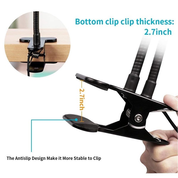 – Support mobile flexible et réglable: support de téléphone mobile à bras long puissant et flexible , clip rotatif rotatif à col de cygne sur 360 degrés, vous pouvez le fixer à la table, et au lit, ou horizontal), peut être performance en direct, selfie ou chat vidéo, ou en tant que pupitre, lampe de table.