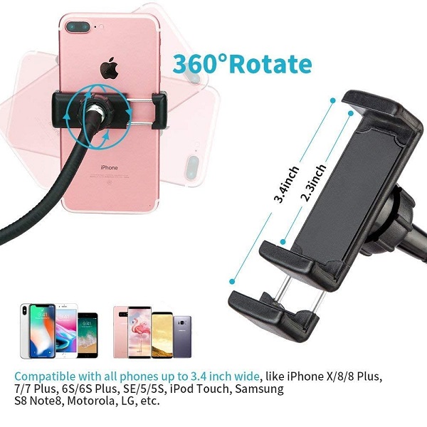 – Support de téléphone portable universel: la largeur de ce support de téléphone portable est de 2.36 pouces minimum à 3.15 pouces maximum, et il sera compatible avec la plupart des téléphones intelligents