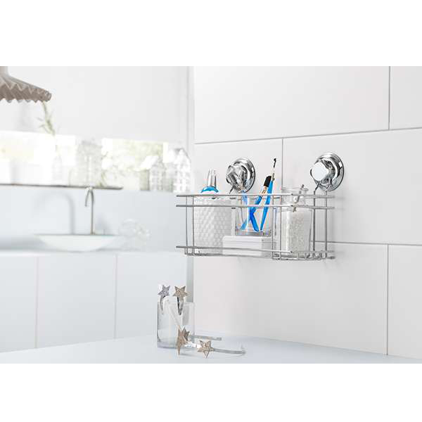 Étagère D’Angle à Ventouses Argent : Dimensions: 30 x 15 x H. 20.5 cm (diamètre ventouse 7 cm)
