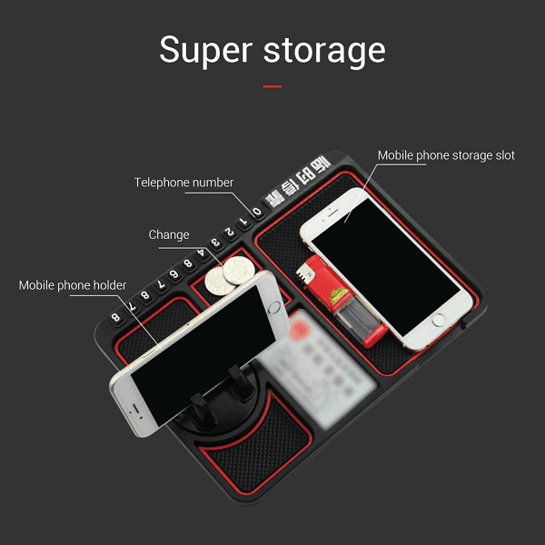 - Fonction 4 en 1 : Numéros divers en cas de besoin + support pour téléphone portable en deux sens+ petit espace rangement + tapis antidérapant