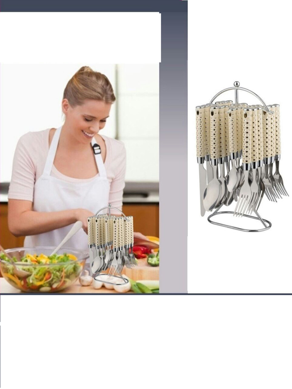 – Ménagère de 24 Pièces avec Support blanc