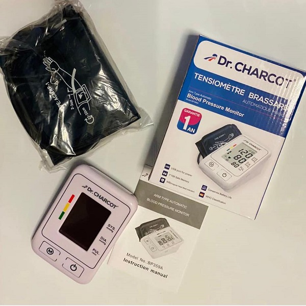 – Tensiomètre électronique au bras : mesure la tension artérielle et les battements du cœur.