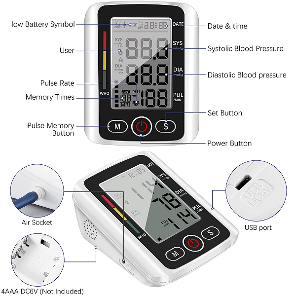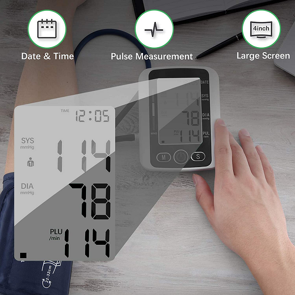 • Grand écran LCD : avec un écran LED , il affiche clairement les résultats de la pression artérielle, du pouls et de l’arythmie, aidant les utilisateurs à lire rapidement et avec précision