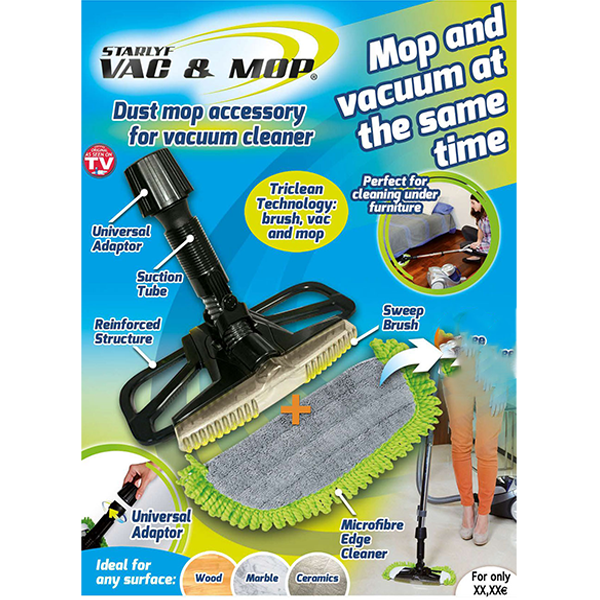 – Un gain de temps précieux grâce à la housse en microfibre qui attire peluches et poussière tel un aimant et donne un nouvel éclat aux carrelages, parquets, stratifiés et sols plastiques. ·
