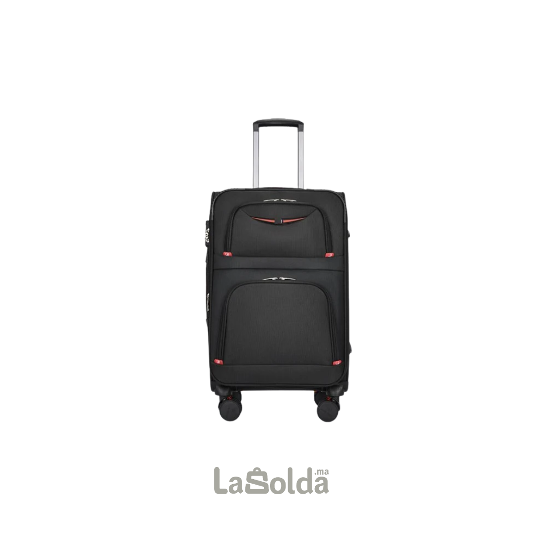Sa coque textile résistante absorbe les chocs légers tout en restant souple. Elle s’adapte aux voyages courts, déplacements professionnels ou escapades urbaines. Son coloris noir confère un look classique et professionnel, toujours facile à assortir.